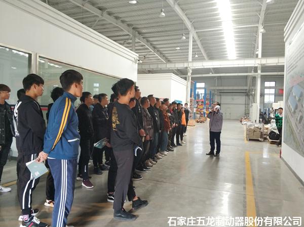 期間,師生們首先參觀了公司生產(chǎn)現(xiàn)場(chǎng),機(jī)加車間、電控車間、總裝車間、數(shù)控車間,通過現(xiàn)場(chǎng)的參觀,親身感受五龍現(xiàn)代化流水線與制動(dòng)器的生產(chǎn)工藝方法。