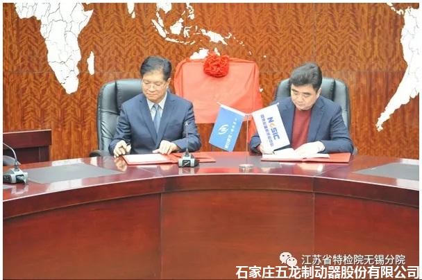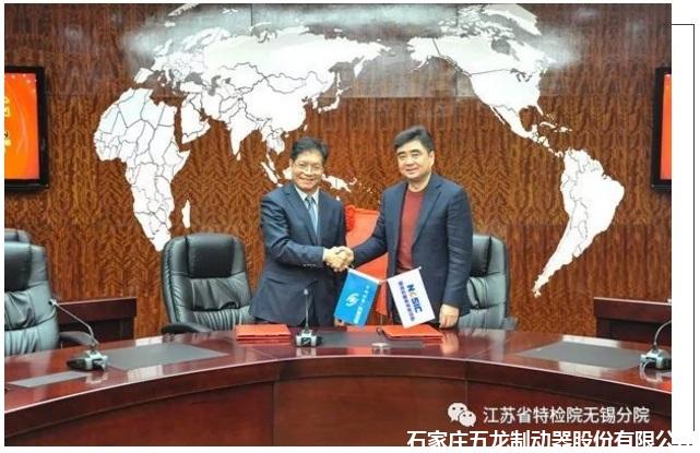 石家莊五龍制動(dòng)器股份有限公司董事長(zhǎng)韓伍林、江蘇省特檢院黨委委員、無(wú)錫分院院長(zhǎng)孫小偉、百堅(jiān)毅副院長(zhǎng)、無(wú)錫分院科技部周華部長(zhǎng)、國(guó)起中心負(fù)責(zé)人蘇文勝博士等出席了簽約儀式。