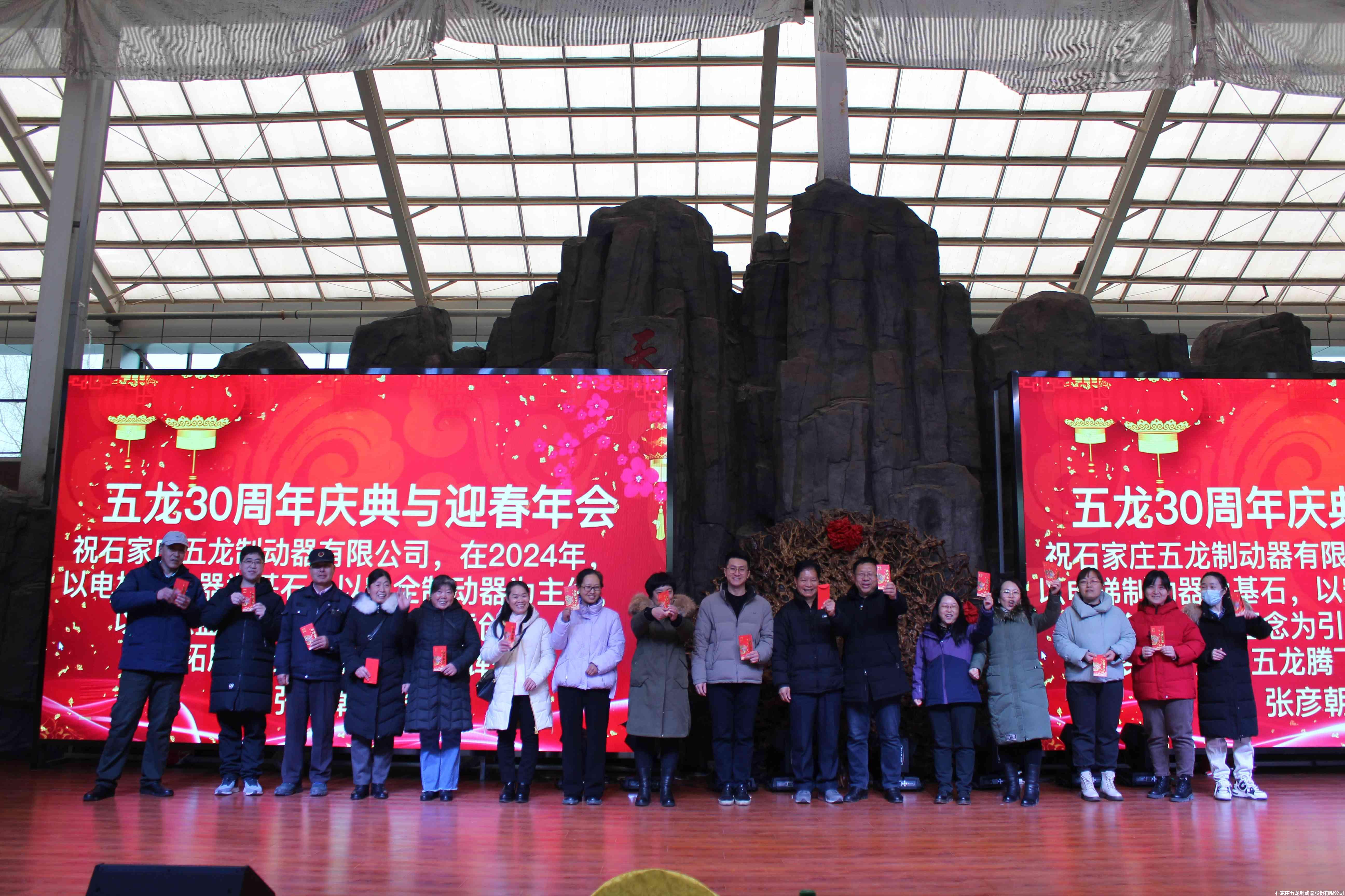 為了慶祝這個特殊的時刻,五龍制動精心策劃了一系列慶典活動。包括優(yōu)秀員工表彰、老員工答謝、才藝演出、發(fā)迎春紅包、抽獎環(huán)節(jié)、游園活動以及集體宴等豐富多彩的慶?;顒?。老員工紛紛表示,待在春暖花開時,一定到花園式工廠看一看?,F場氛圍相當熱烈、非常感人、五龍人歡慶一堂。