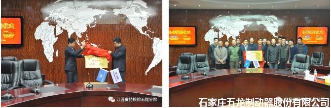 石家莊五龍制動(dòng)器股份有限公司董事長(zhǎng)韓伍林、江蘇省特檢院黨委委員、無(wú)錫分院院長(zhǎng)孫小偉、百堅(jiān)毅副院長(zhǎng)、無(wú)錫分院科技部周華部長(zhǎng)、國(guó)起中心負(fù)責(zé)人蘇文勝博士等出席了簽約儀式。