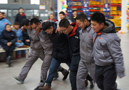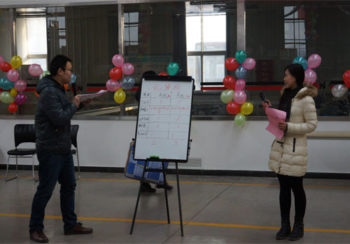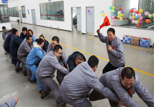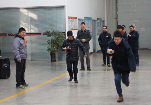 員工迎春活動分五項PK賽,由兩位副總分別帶領A、B兩隊進行團體撥河、團體踢鍵子、團體跳繩、團體托乒乓球接力賽跑、團體齊心協(xié)力賽。