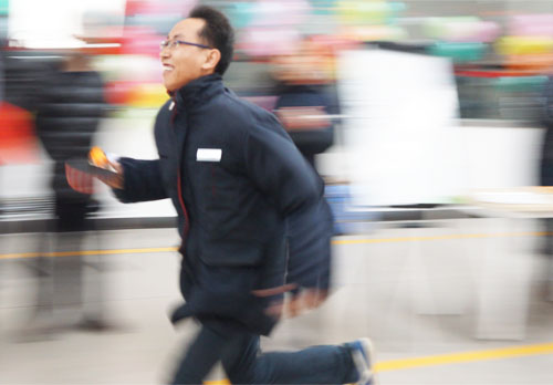 年會現(xiàn)場中,董事長韓伍林先生給五龍人全體員工頒發(fā)了新春紅包。
